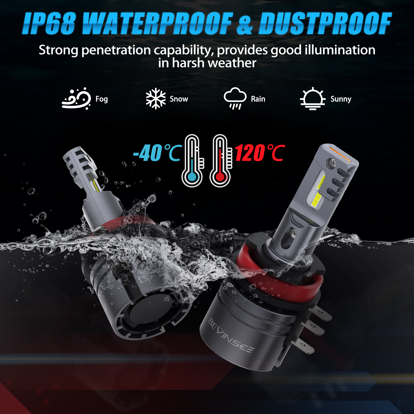 【IP68 Waterproof】Resistant to any bad weather, such as heavy rain, snow and humidity.