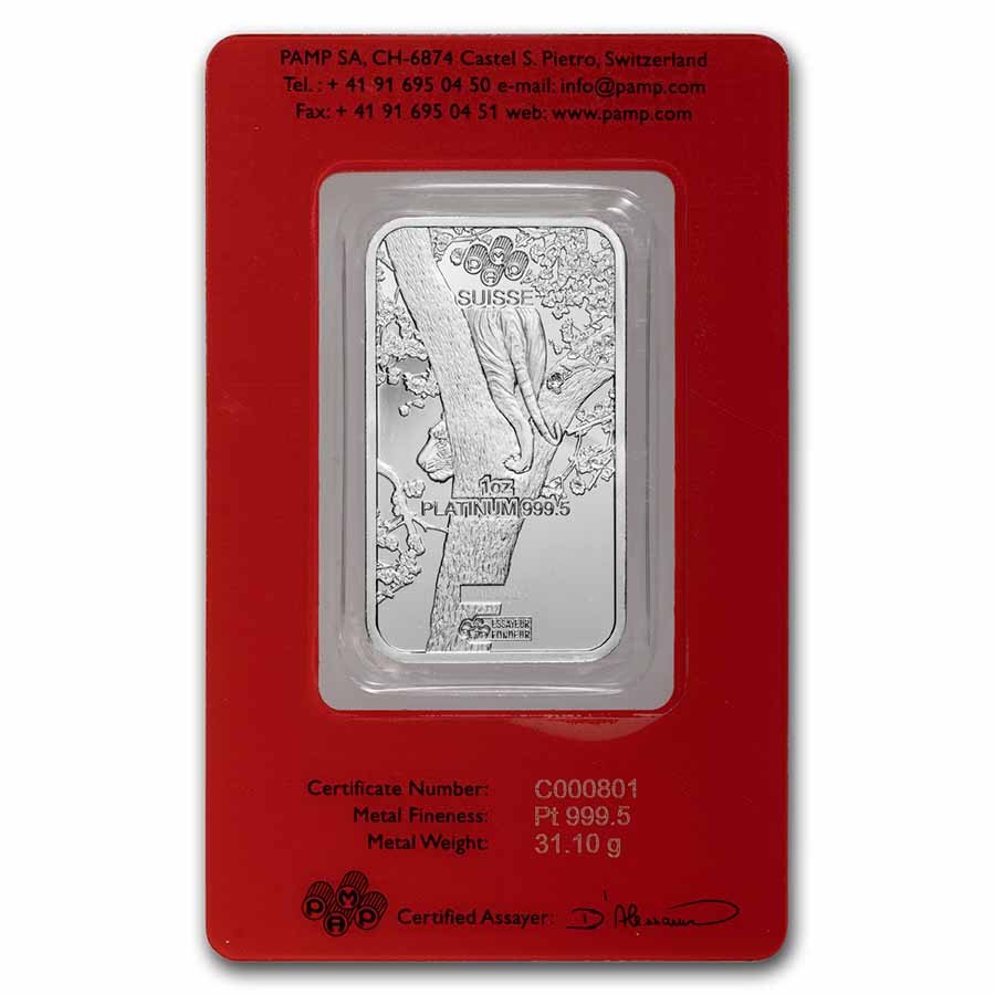 2022 1 oz Platinum Bar - PAMP Suisse (Year of the Tiger)
