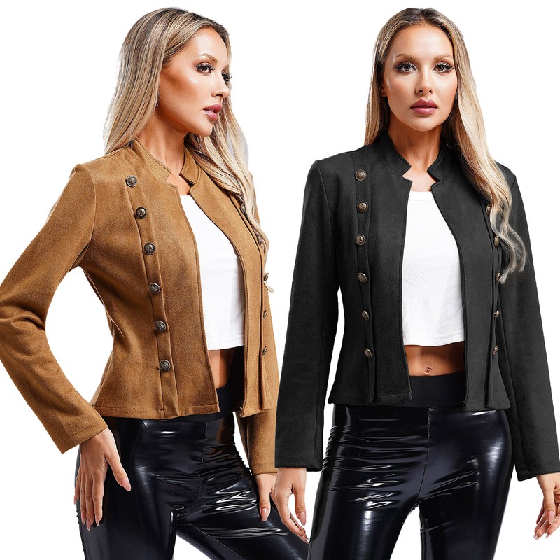 Long tailcoat is for women, with long sleeve, deep v neck with double-breasted button.