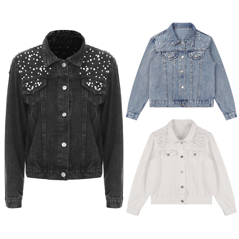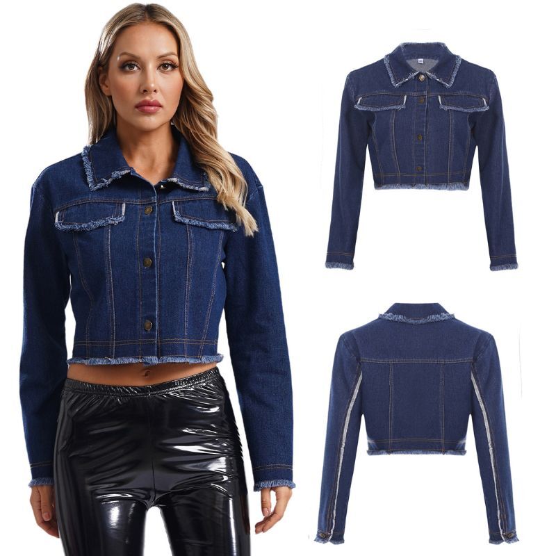 Turn-down satin collar, double-breasted design, front snap closure.