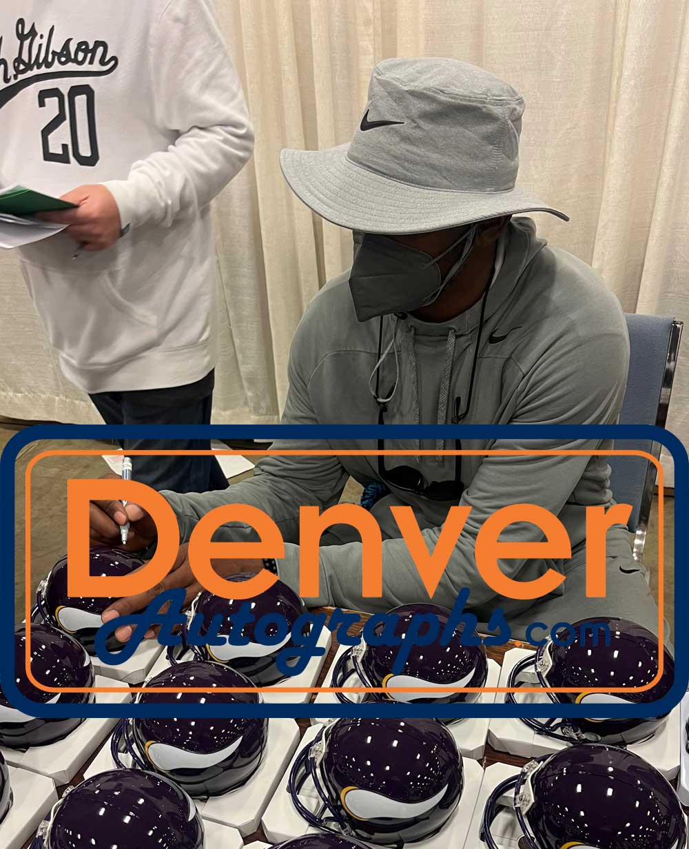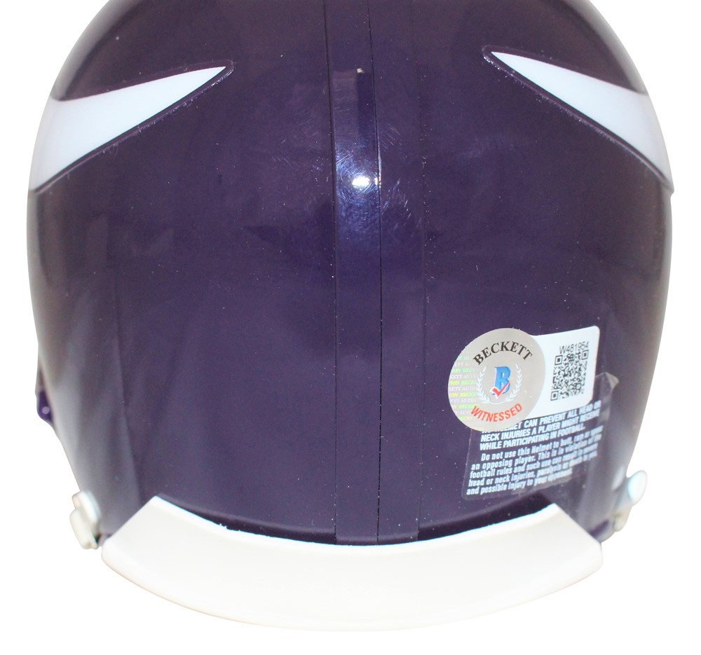 The number in the listing title is just an inventory sku for our records and is not the authentication number. The item pictured is a stock photo unless otherwise noted. This is a Minnesota Vikings VSR4 TB '83-'01 Mini Helmet that was personally autographed by Randy Moss. Includes a certificate of authenticity from Beckett Authentication Services (BAS) and Denver Autographs.