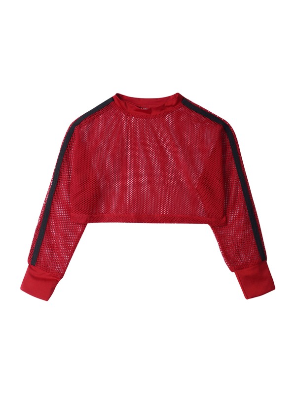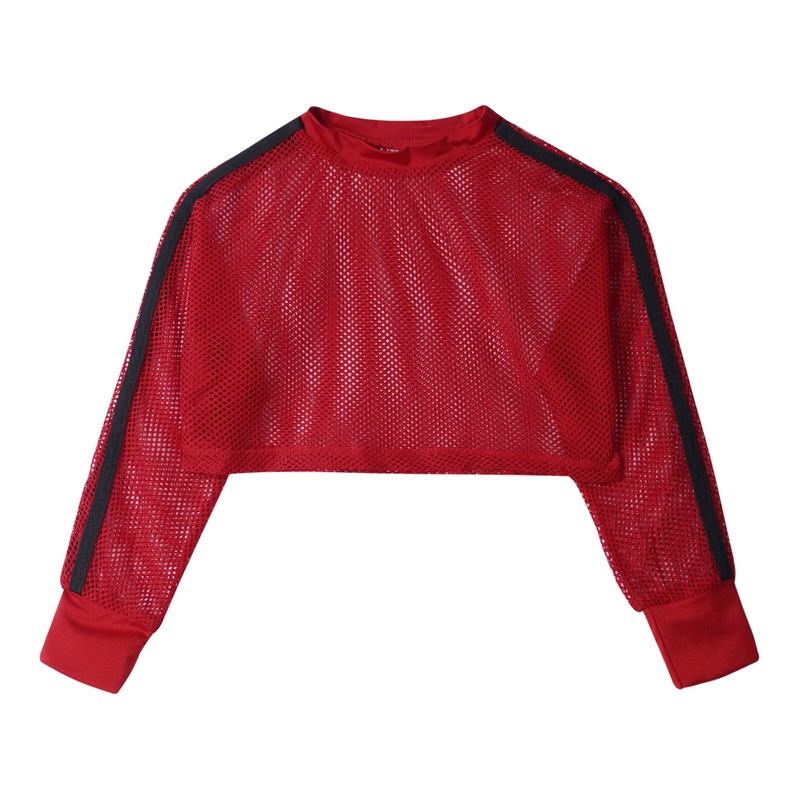 Drawstring hooded crop top for girls, mesh patchwork long sleeve, make girl cool and fashion.