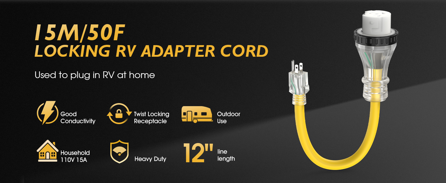 15A Male to 30A Female RV Power Adapter 12 Inch