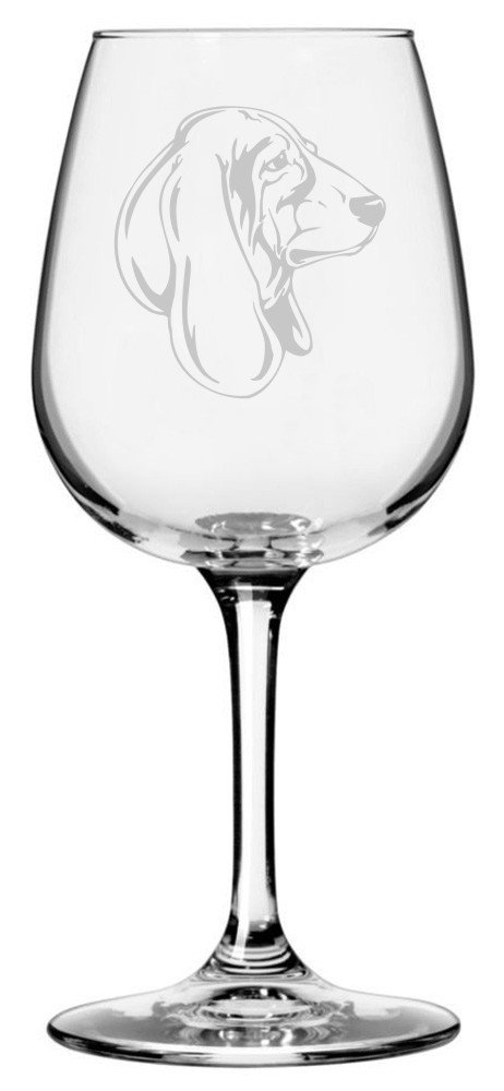 Basset Hound Dog Themed Etched All Purpose 12.75oz Wine Glass