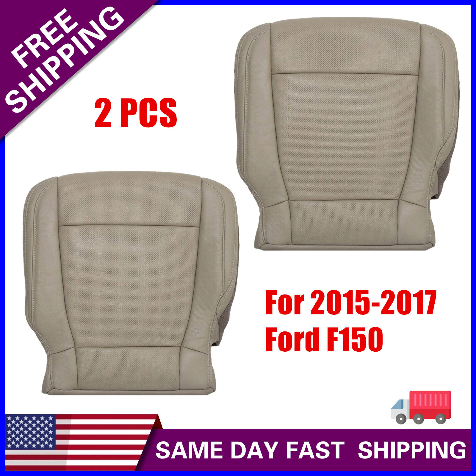 For 2015 2016 2017 Ford F150 Driver & Passenger Bottom Seat Cover Tan