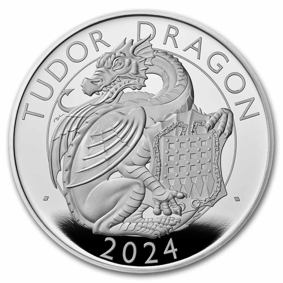 This majestic coin is a must-have for any collection. Add this 2024 1 oz Royal Tudor Beasts: Tudor Dragon Silver Proof to your cart today!