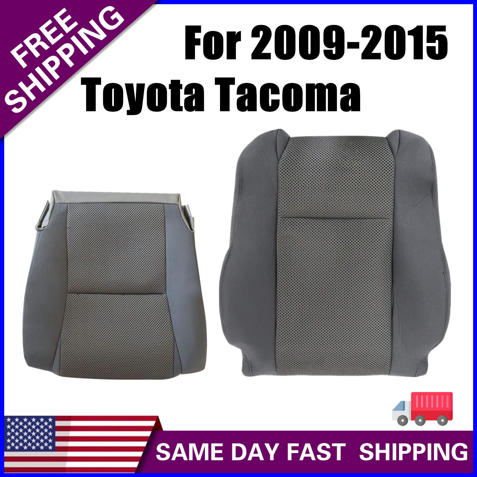 NEW For 2009-2015 Toyota Tacoma Passenger Side Bottom & Top Cloth Seat Cover Gray