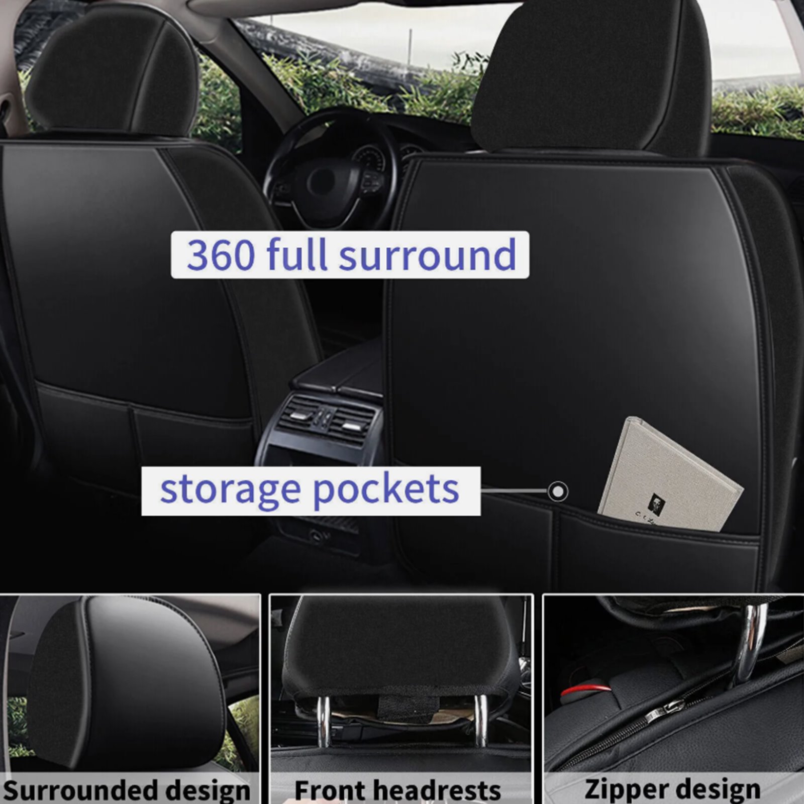 The side and head caps of the front seats are fully surrounded by elastic cloth, providing comprehensive protection, better fit and not easy to shift. It is not only more beautiful and practical, but also suitable for more models, with stronger versatility.