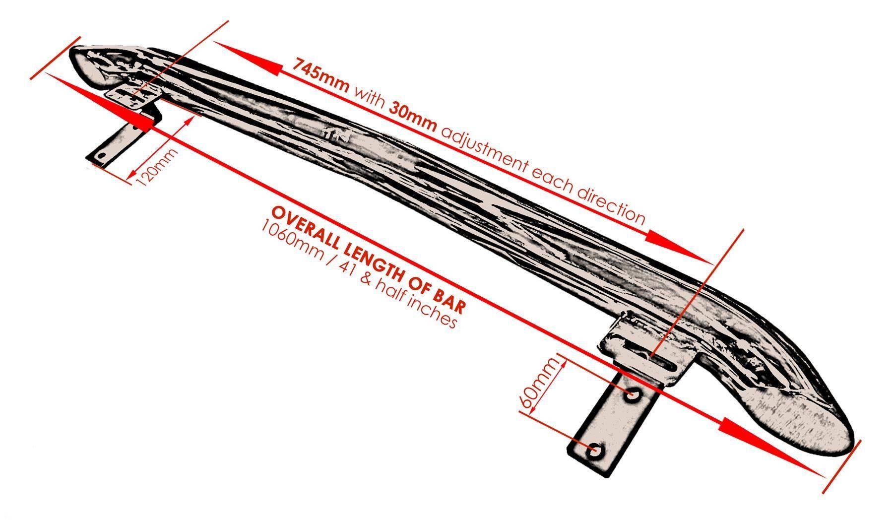 The bar is 2.5 inch / 63 mm diameter and 106cm in length, with powder coated steel brackets. Made from high quality black powder coated stainless steel material with quality matte black finish that is also paintable. Our bars present a quality product for your vehicle at a reasonable price.
