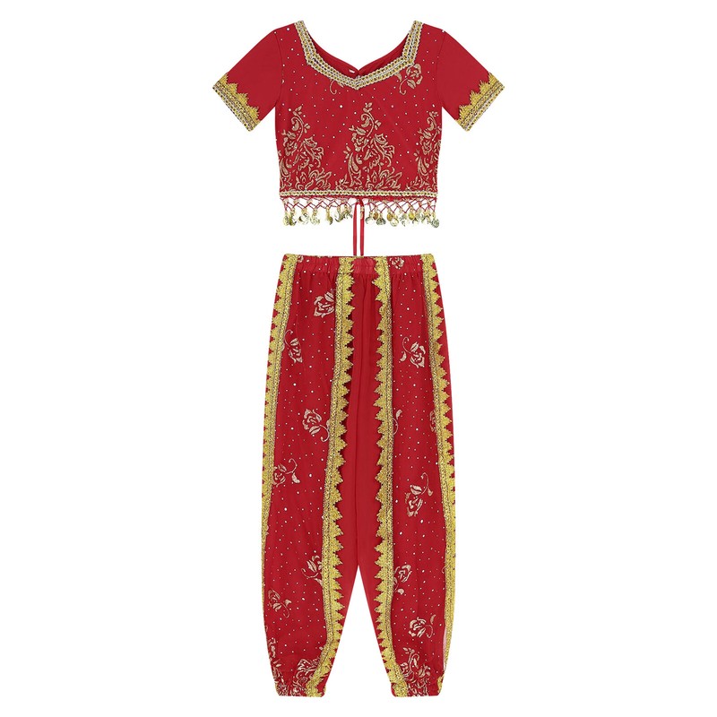 Women’s belly dance costume is featured with floral print and braid trim to make you more beautiful and eye-catching.