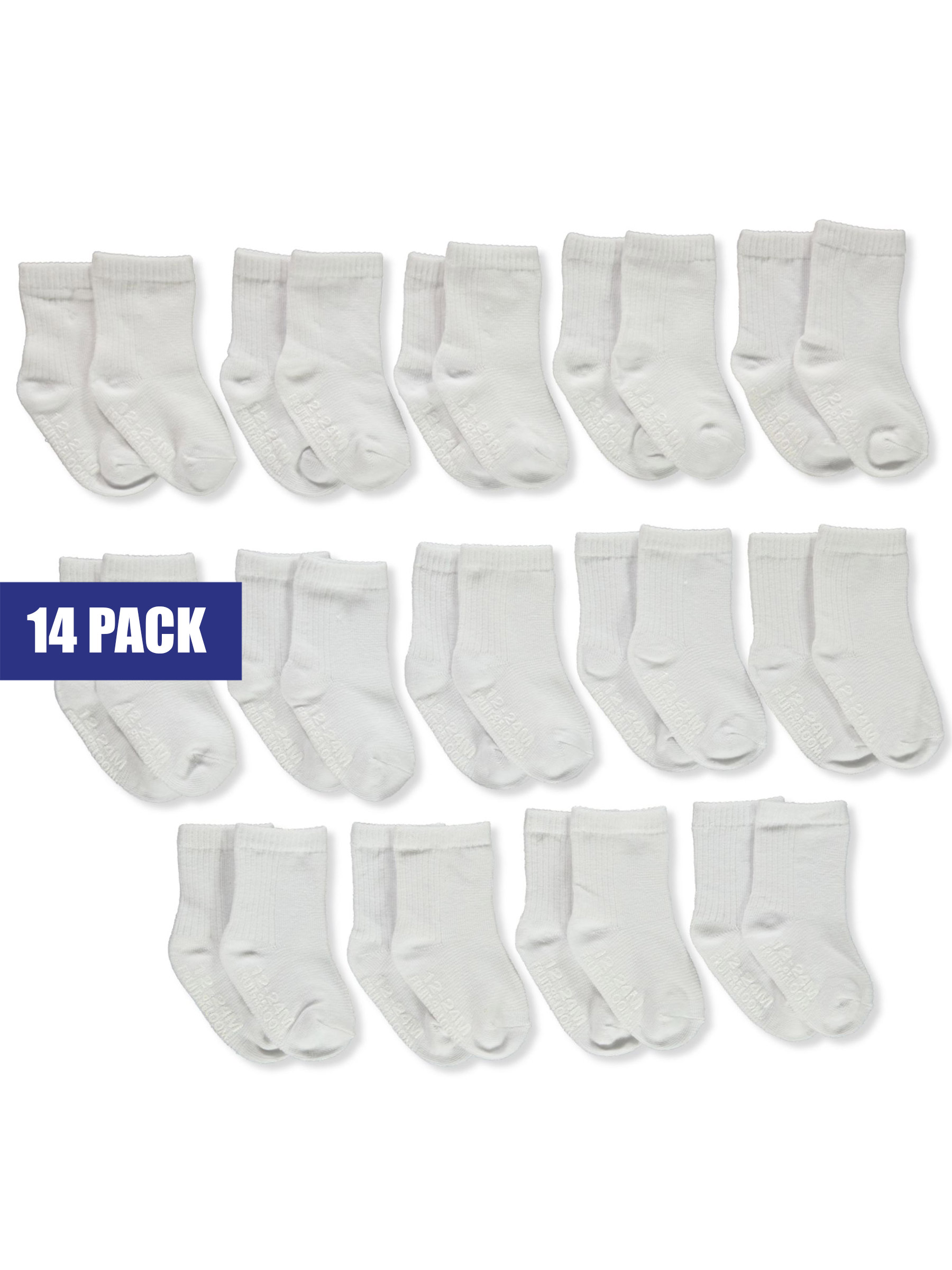 Fruit of the Loom Unisex 14-Pack Crew Socks - white, 12 - 24 months