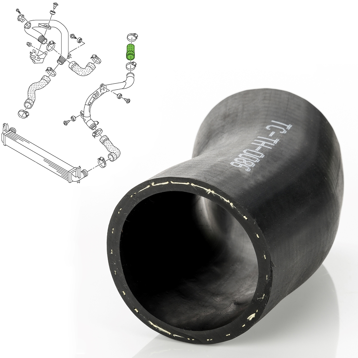 - für 1.2 TDI, 1.6 TDI Motoren - Einbauposition: Motorraum, Verbindungsschlauch, Abgasturbolader - Material: Gummi mit Gewebeeinlage - Innen-Ø an den Enden: ca. 45 mm / 49 mm - Außen-Ø an den Enden: ca. 55 mm / 59 mm