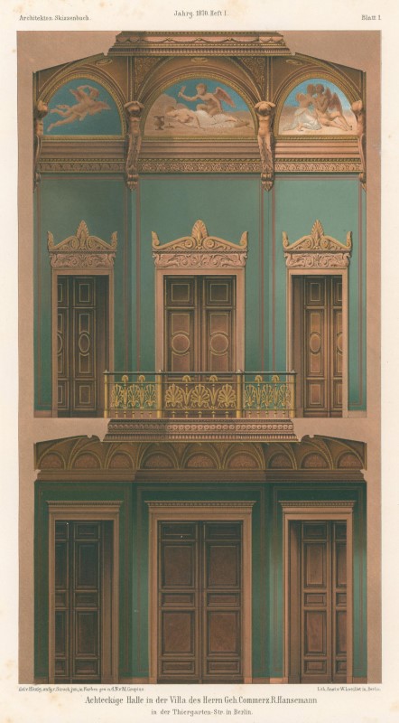 Berlín - Berlín Casas y Villas: Villa Hansemann, 'Hall octogonal en la villa del Señor Geh. Commerz. R. Hansemann en Thiergartenstr. en Berlín ',