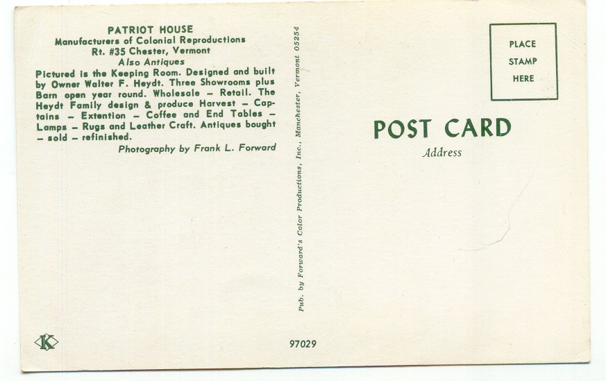 Chester VT Patriot House Antiques & Colonial Reproductions Postcard Vermont