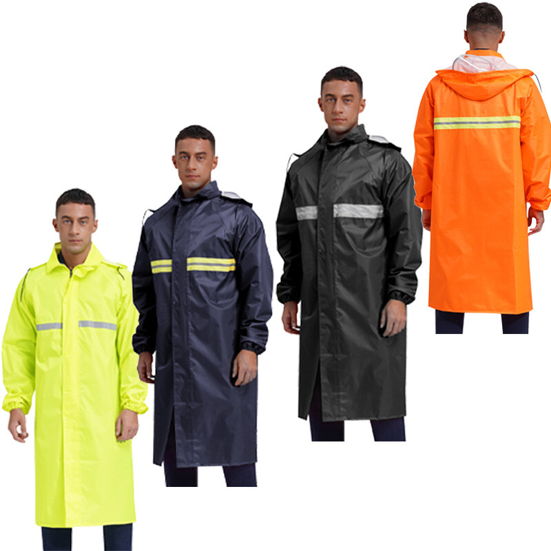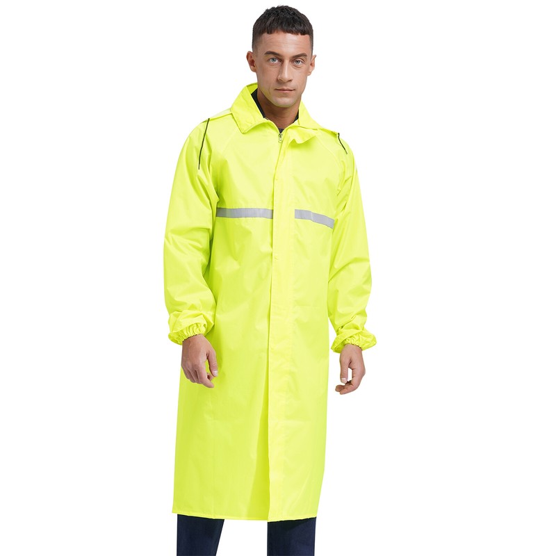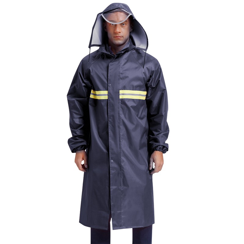 Quality reflective strips keep you safe on rainy days and at night. Long raincoat with knee length provides complete protection.
