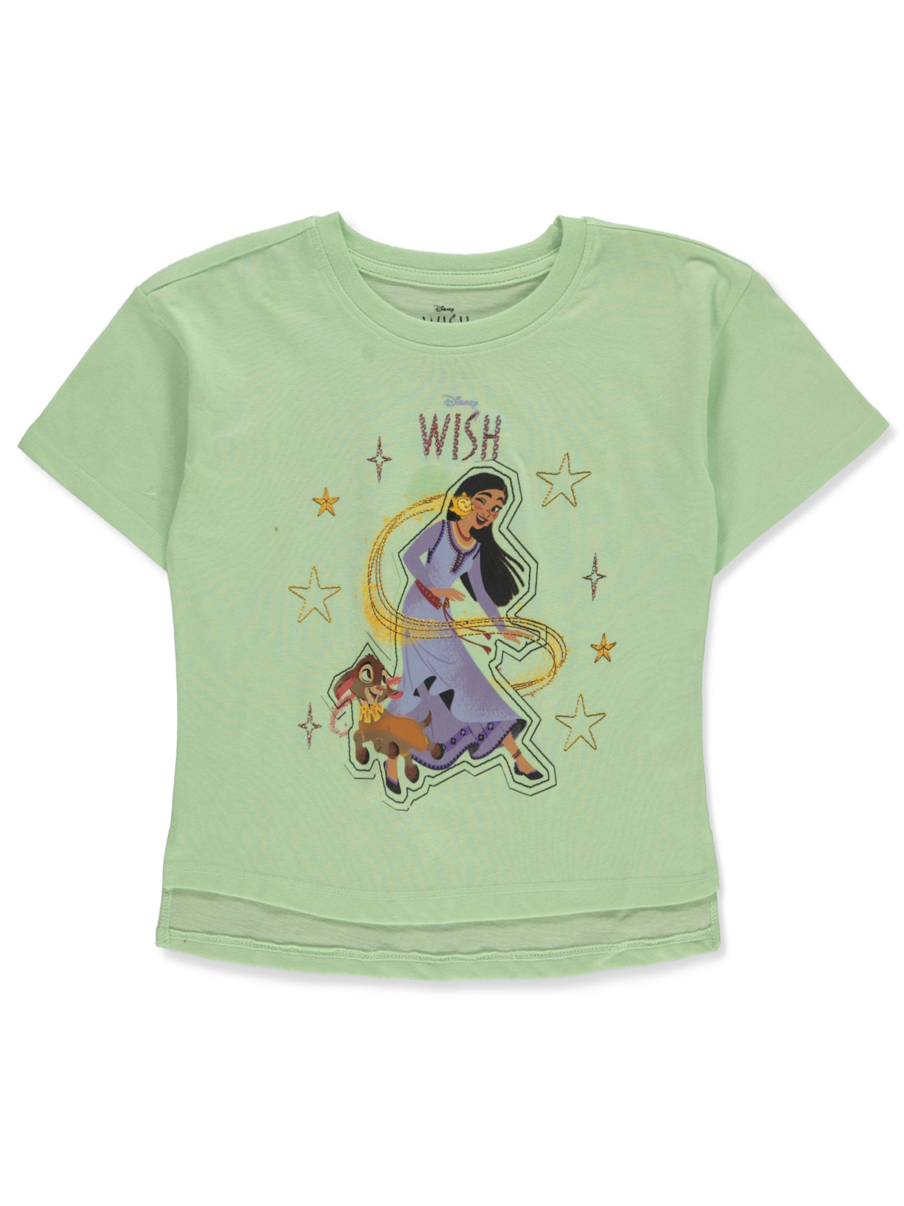 Sweeten her look with this T-shirt starring her favorite characters from Disney's Wish! Disney Wish T-shirt Cotton construction Ribbed Trim Graphic applique 100% cotton Machine wash cold Made in Egypt