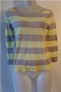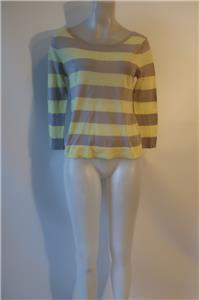 - Womens Rag & Bone Taupe Yellow Striped Light Knit Cotton Knit Top L *