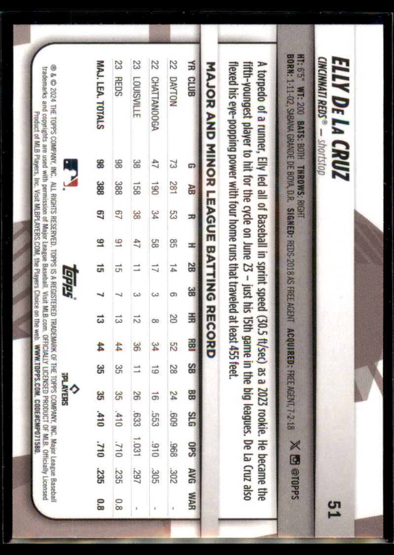 | 2024 Topps Big League Elly De La Cruz Cincinnati Reds RC #51 - QTY |