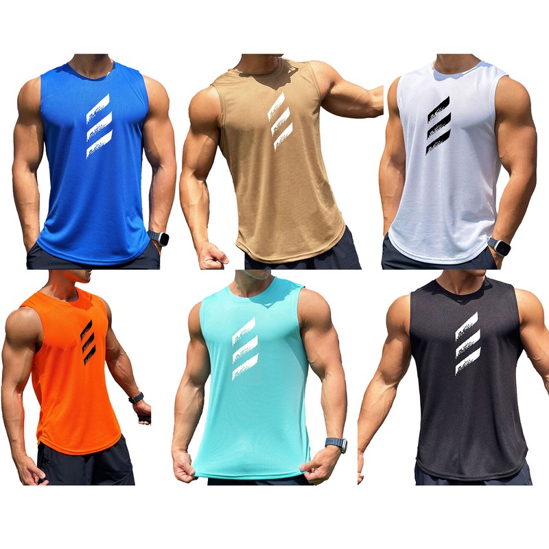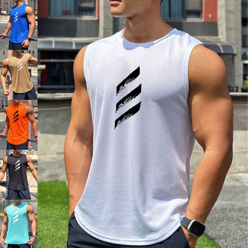 Man Round Neck Sleeveless Racer Back Sport T-shirt Vest Top for Running Gym Fitness Ball Games.