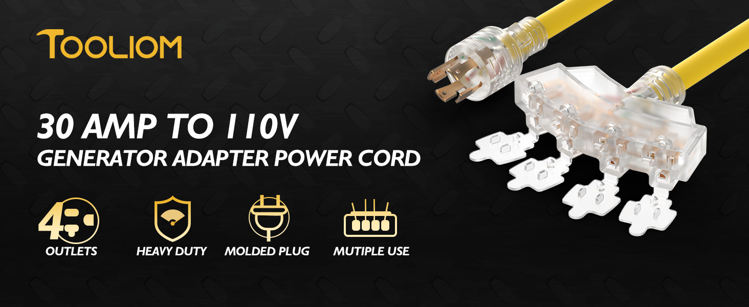 TOOLIOM 12 inch 3-prong 30 amp locking male adapter for generator use with RV plugs.