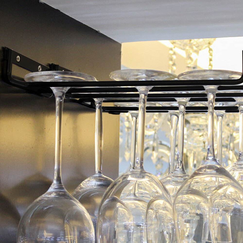 HIGH QUALITY: With durable construction, the rack is easy to clean and will last a lifetime. Your stemware will accent your existing cabinetry in this convenient storage unit KEEP CLEAN: The hanging wine glass rack easily mounts under cabinets anywhere you want to keep stemware sets tidy & convenient & will protect your glasses from getting chipped or cracked as well as keeping them clean and dust-free STORAGE ORGANIZATION: Install as many racks as you need underneath the cabinets in your kitchen, bar, dining room, or anywhere you want. WIDE APPLICATION: The wine rack is best for kitchen, bar, dining room decorating the cabinet, and cabinetry. Suitable for many kinds of stemware cups, like Bordeaux glass, espresso cups, champagne cups, burgundy glasses, tulip wine glass, brandy glasses, etc