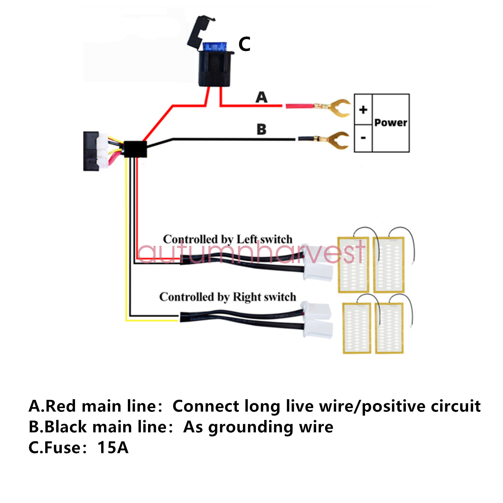 Power rating DC12V,27±3W /each pad