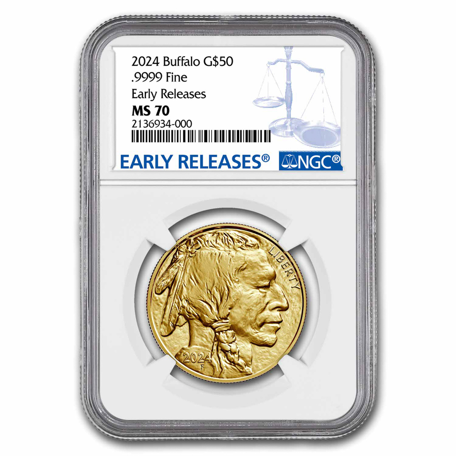 With every brand-new Gold Buffalo release, NGC designates choice coins that qualify for their Early Release designation. This specific label ensures that the American Gold Buffalo coin was shipped from the United States Mint within the first 30 days of its release. Obtaining this designation means your 2024 American Eagle coin not only boasts authenticity but also offers an additional level of appeal to collectors.