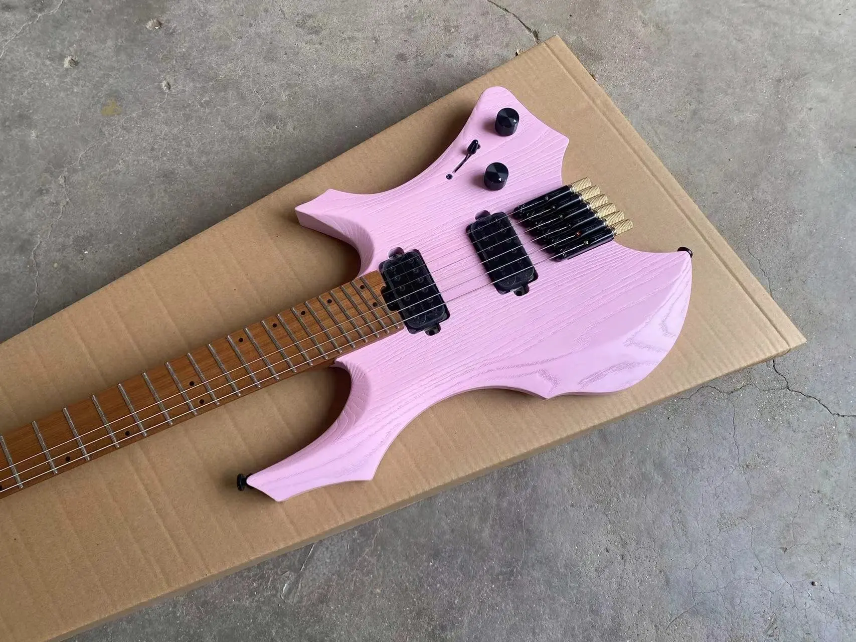 Acepro Headless Electric Guitar, Roasted Ash Body, Roasted Maple Neck & Fingerboard, 2.9 Jumbo Stainless Steel Frets, Oblique Frets, Black Hardware, Custom Headless System, Satin Finish: Blue, Black, White, Gray Burst, Pink Color