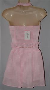 This outfit is size 12 and made by Speechless. It is new with tags, might have some wrinkling with shipping. It is made with 95% polyester and 5% spandex and machine washable. The halter top is lined and has a ruffle around the bottom. The skirt/skort has elastic at the back of the waist, a band in front, has the attached shorts underneath and looks like a skirt all the way around. Very nice outfit.