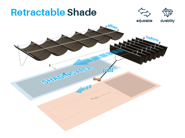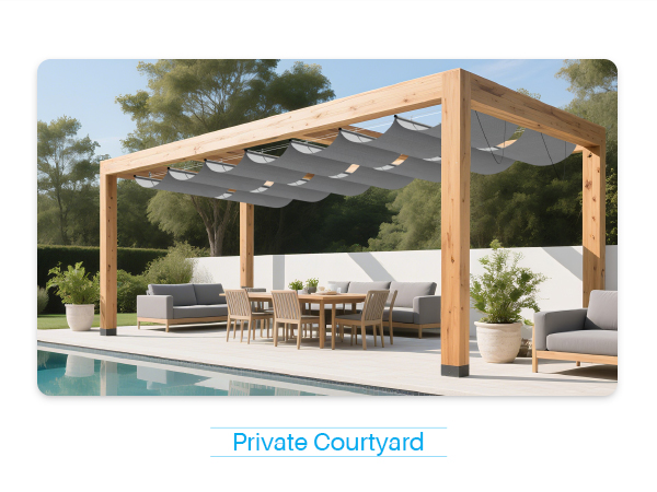 - Retractable Canopy: The sliding structure can control the expansion and contraction area of the pergola replacement cover, dynamically shading, and easily adjusting the sunlight and shade you want