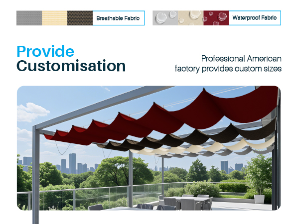 - Customization: Our American factory can customize sizes to meet your yard needs. Please let us know for any questions about patio pergolas for shade