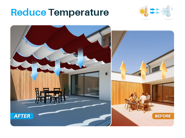 - Ideal Choice: This outdoor shade cover suits dining or parties, swimming pools, backyard, courtyard, garden, porch, garages, and greenhouses. Fashionable and unique sunshade decorations protect furniture from harmful ultraviolet rays
