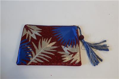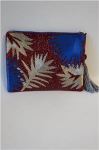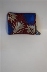 - NWT Womens La Chic Designs Burgundy Blue Leaf Beaded Clutch Wristlet Bag *