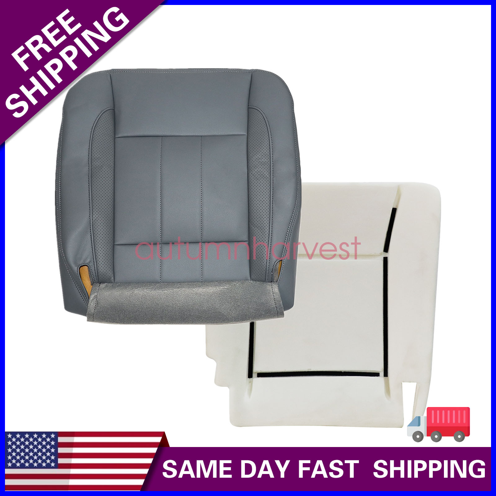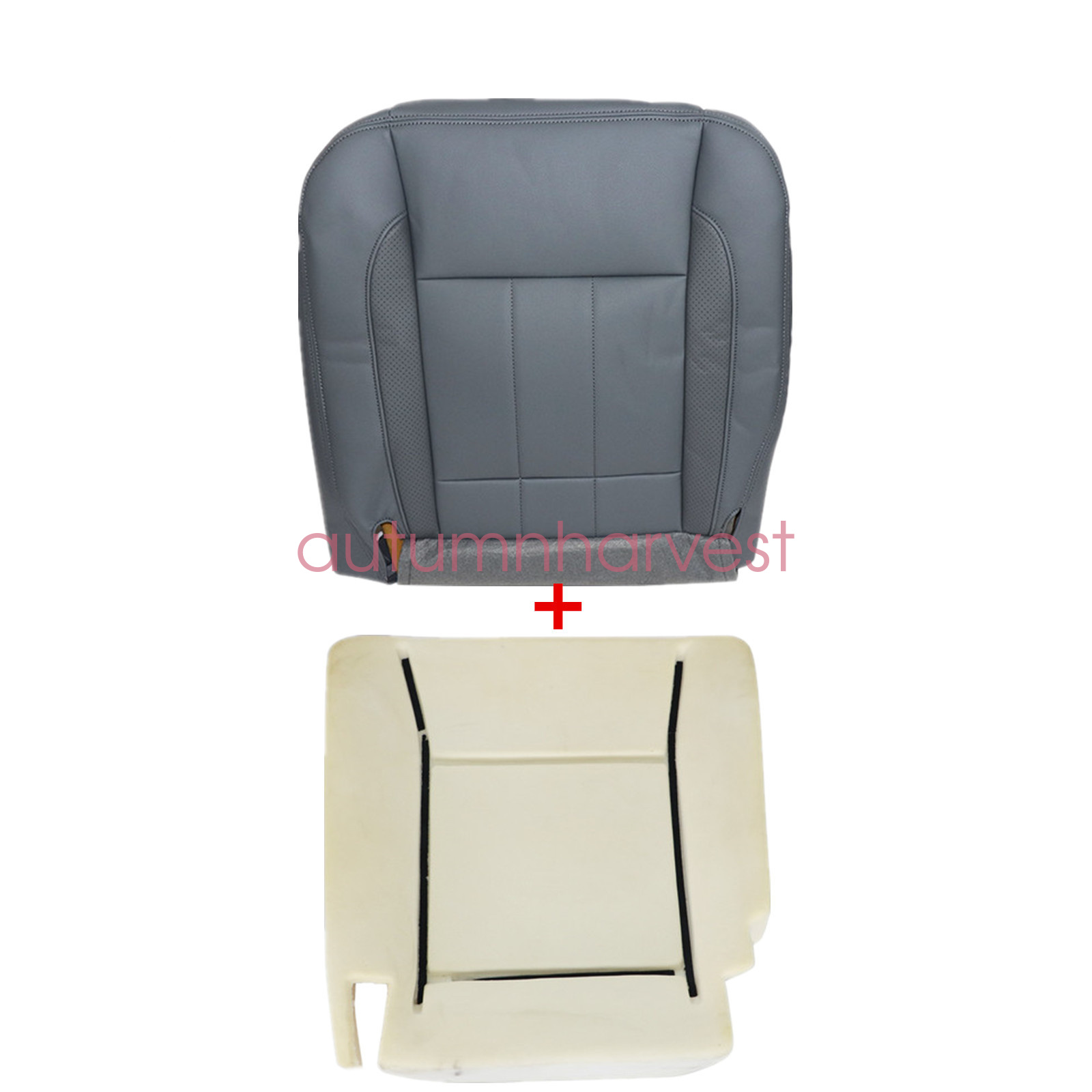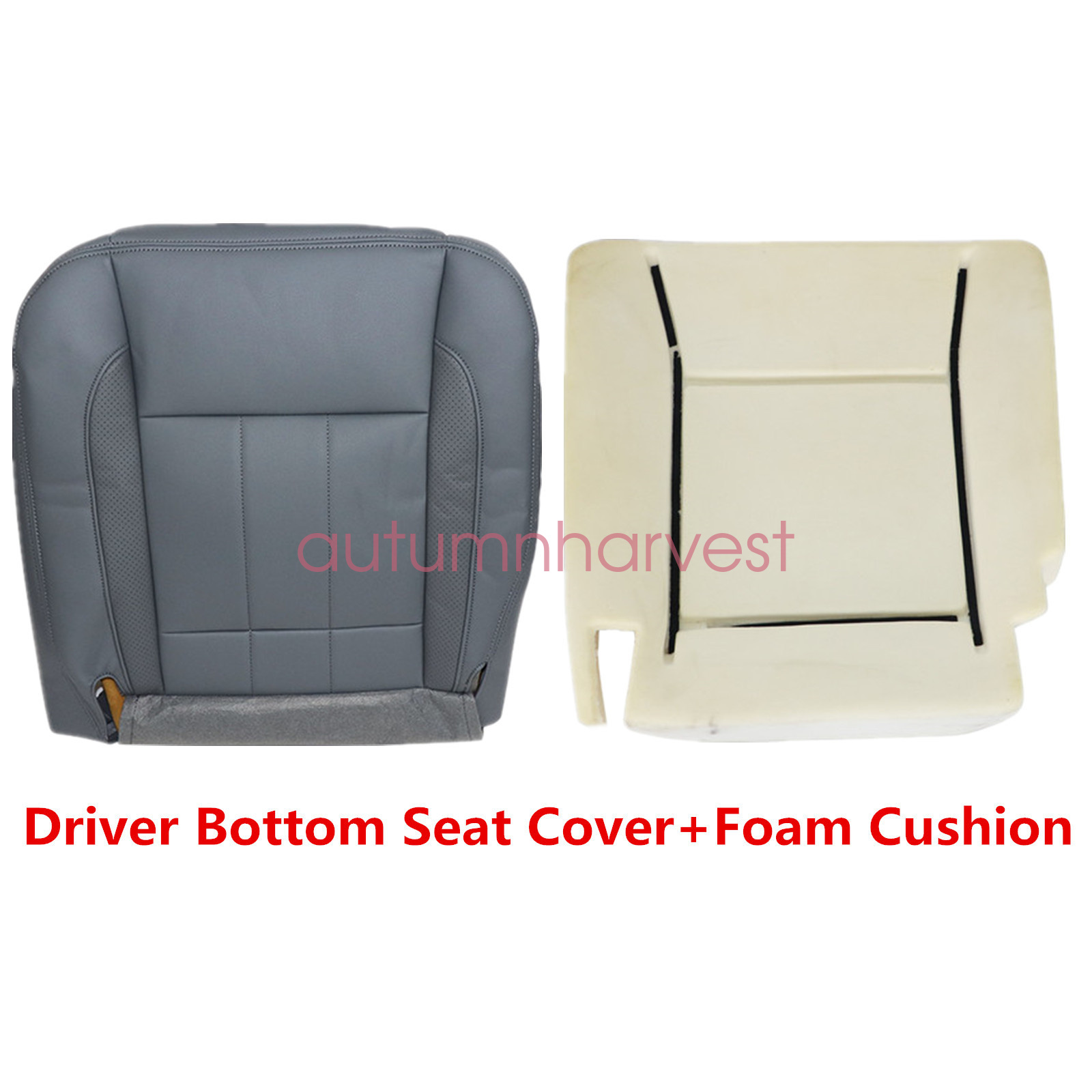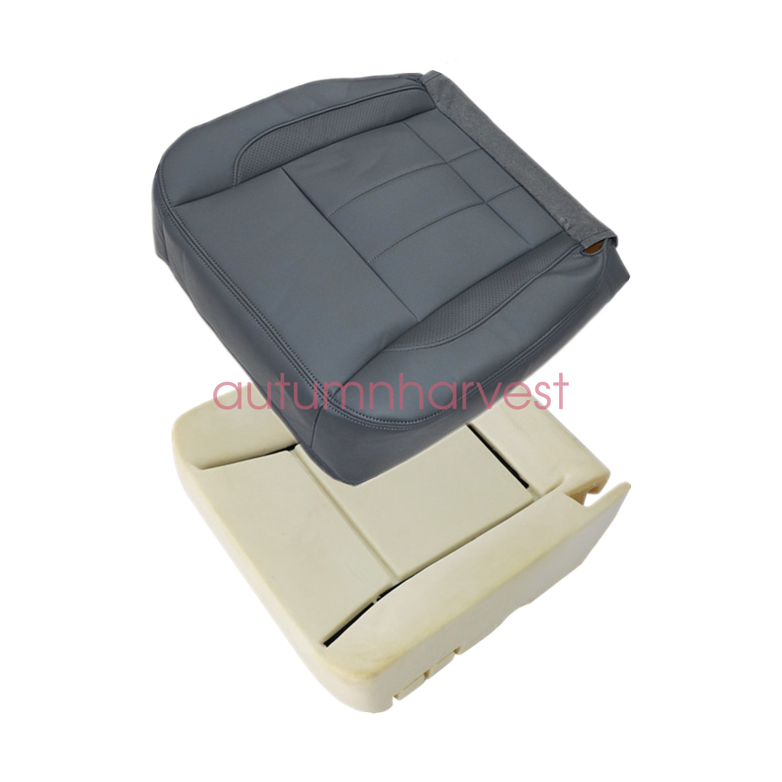 Driver Bottom Leather Seat Cover Gray & Foam Cushion Fits 2006 2007 2008 2009 Dodge Ram 1500 2500 3500