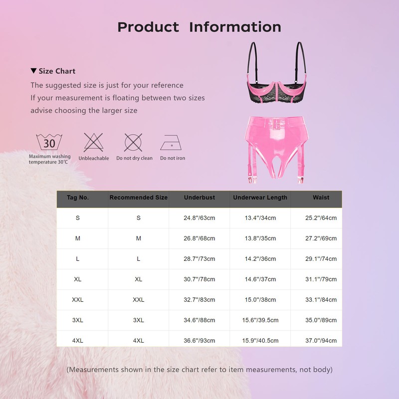 Suitable for nightclub, pole dance, role play, dress-up party, cosplay, night out, Halloween, anniversary, Valentine’s Day and so on. Size Chart