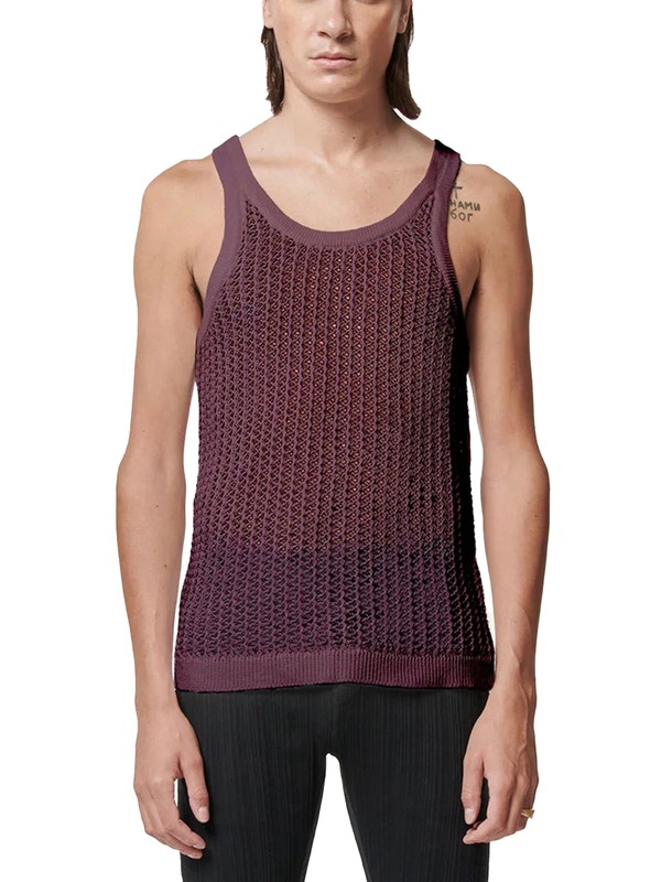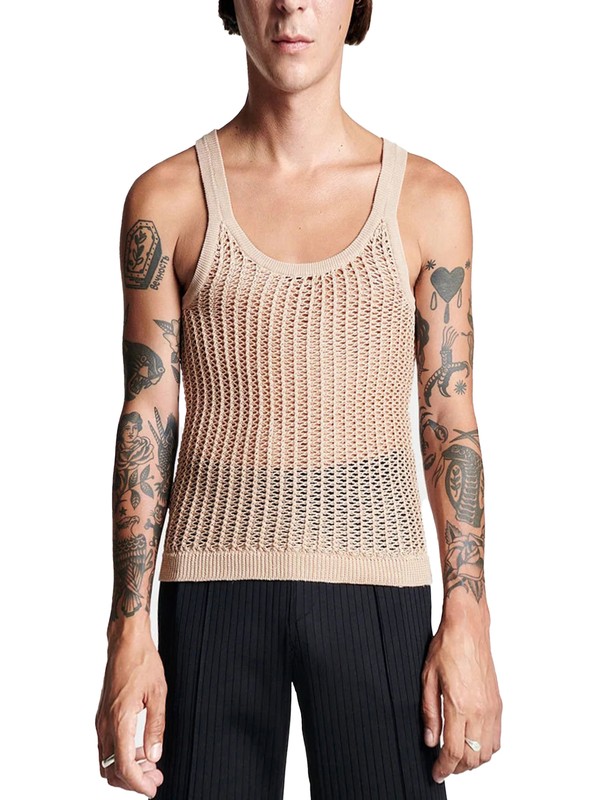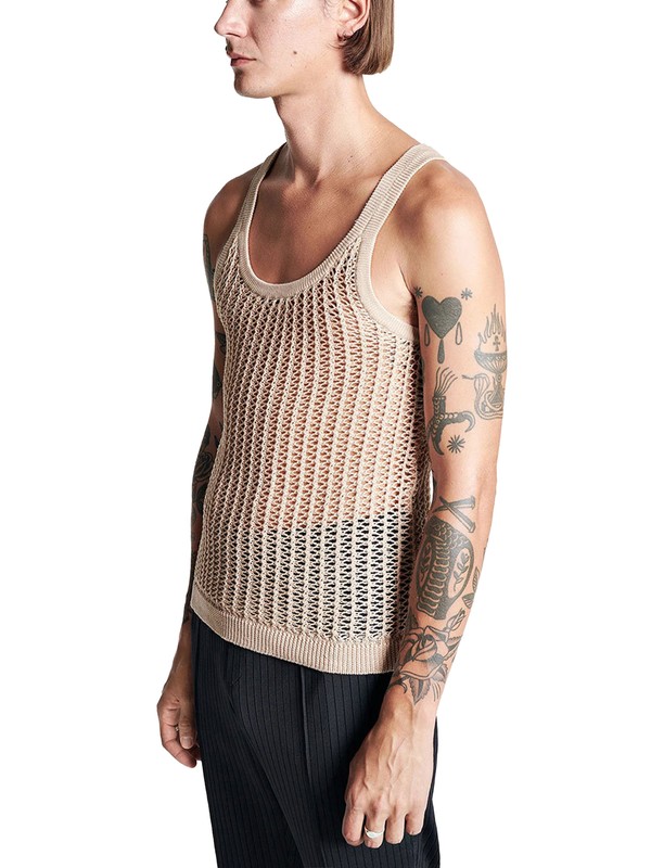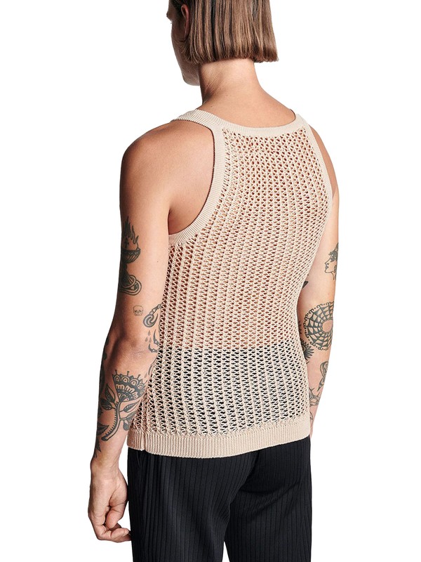 See-through knitted vest is breathable and moisture-wicking.