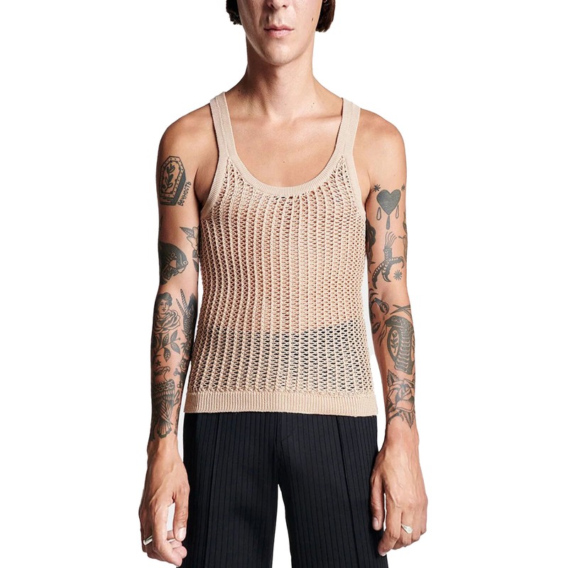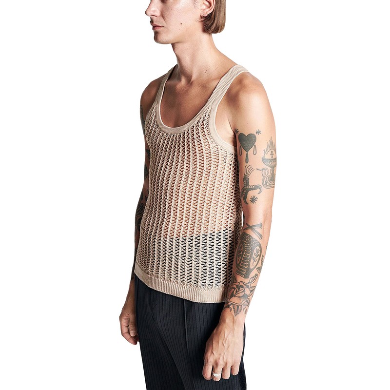 Show off your robust body. Stretchy crochet vest ensures you free movement.