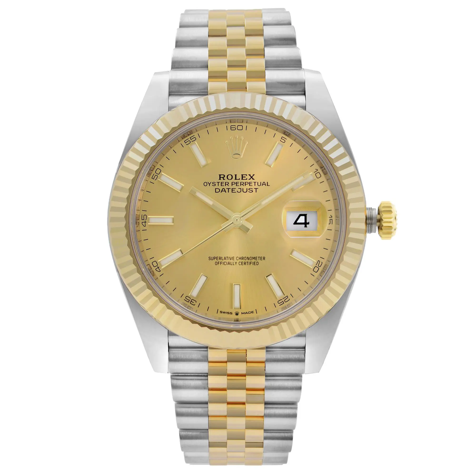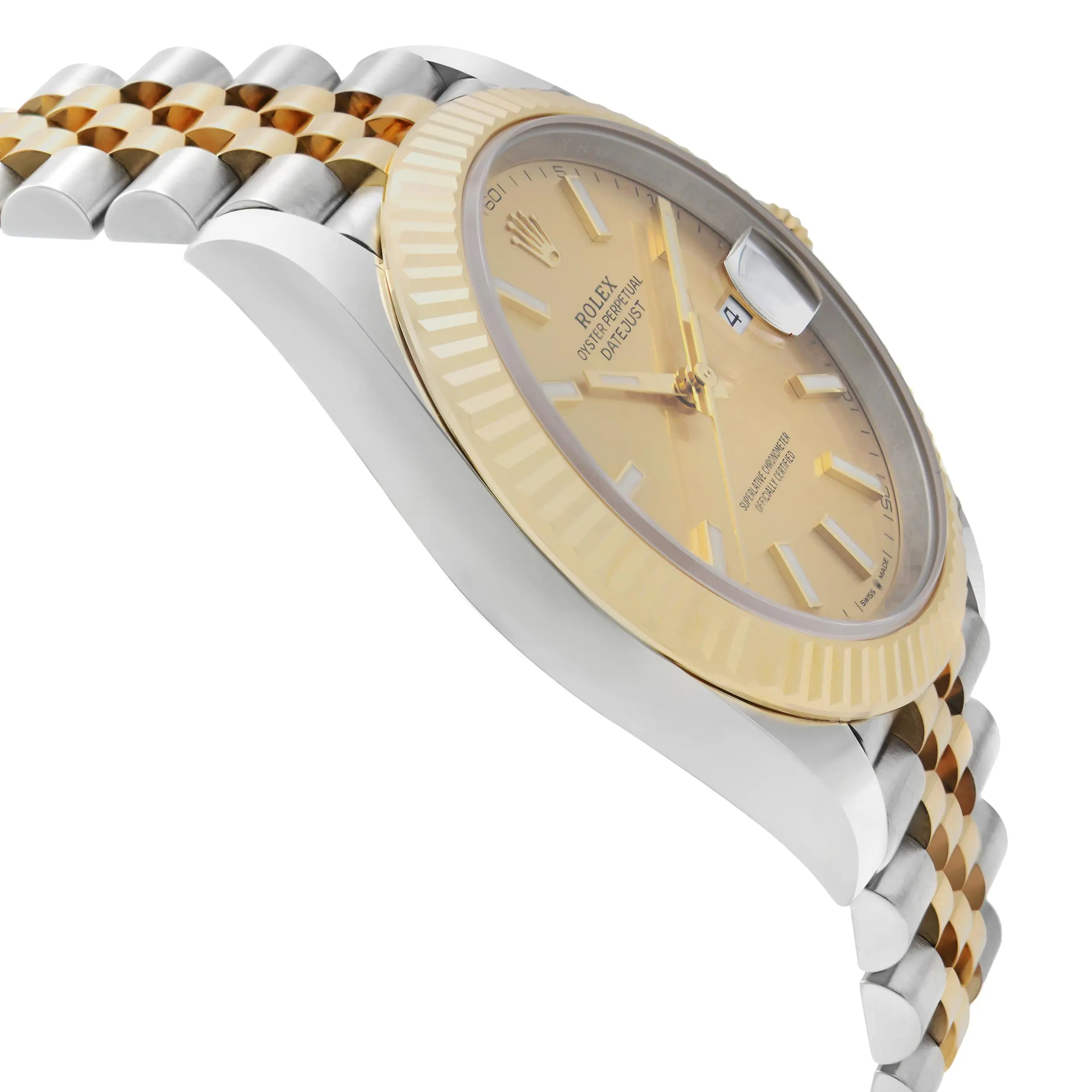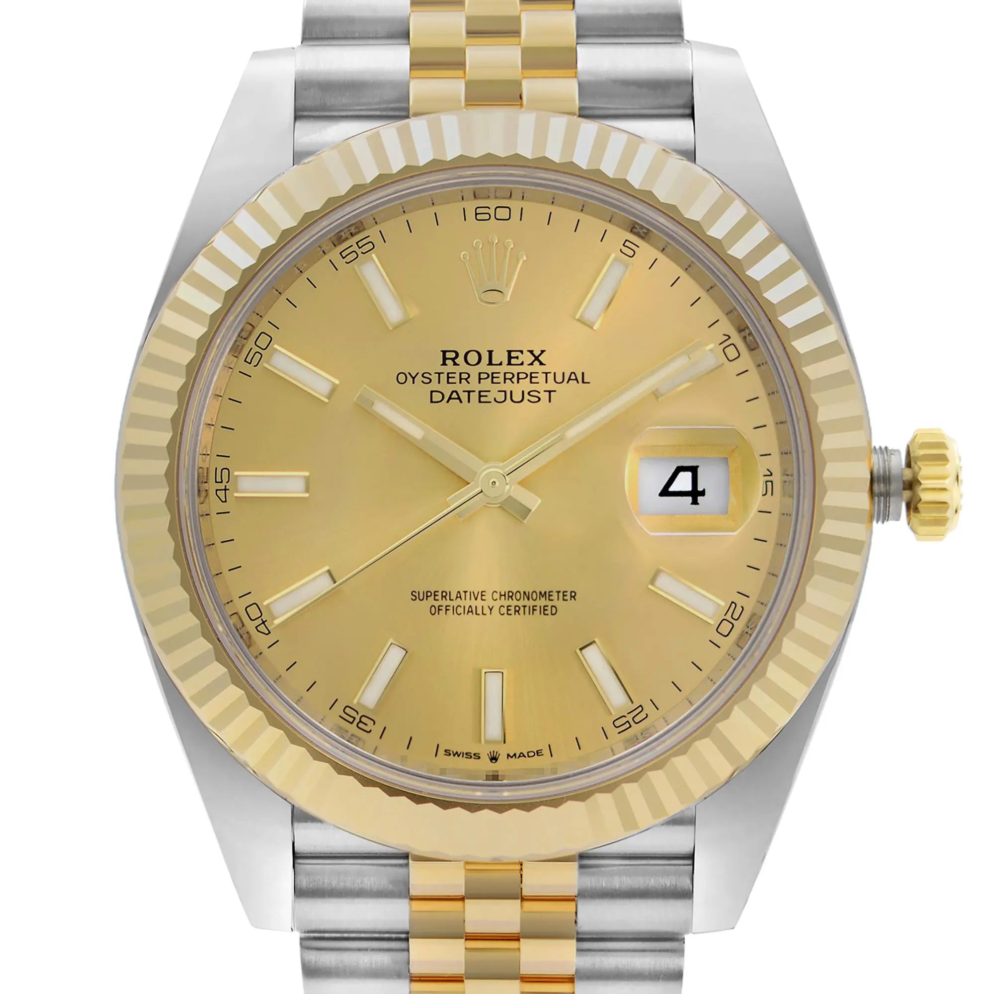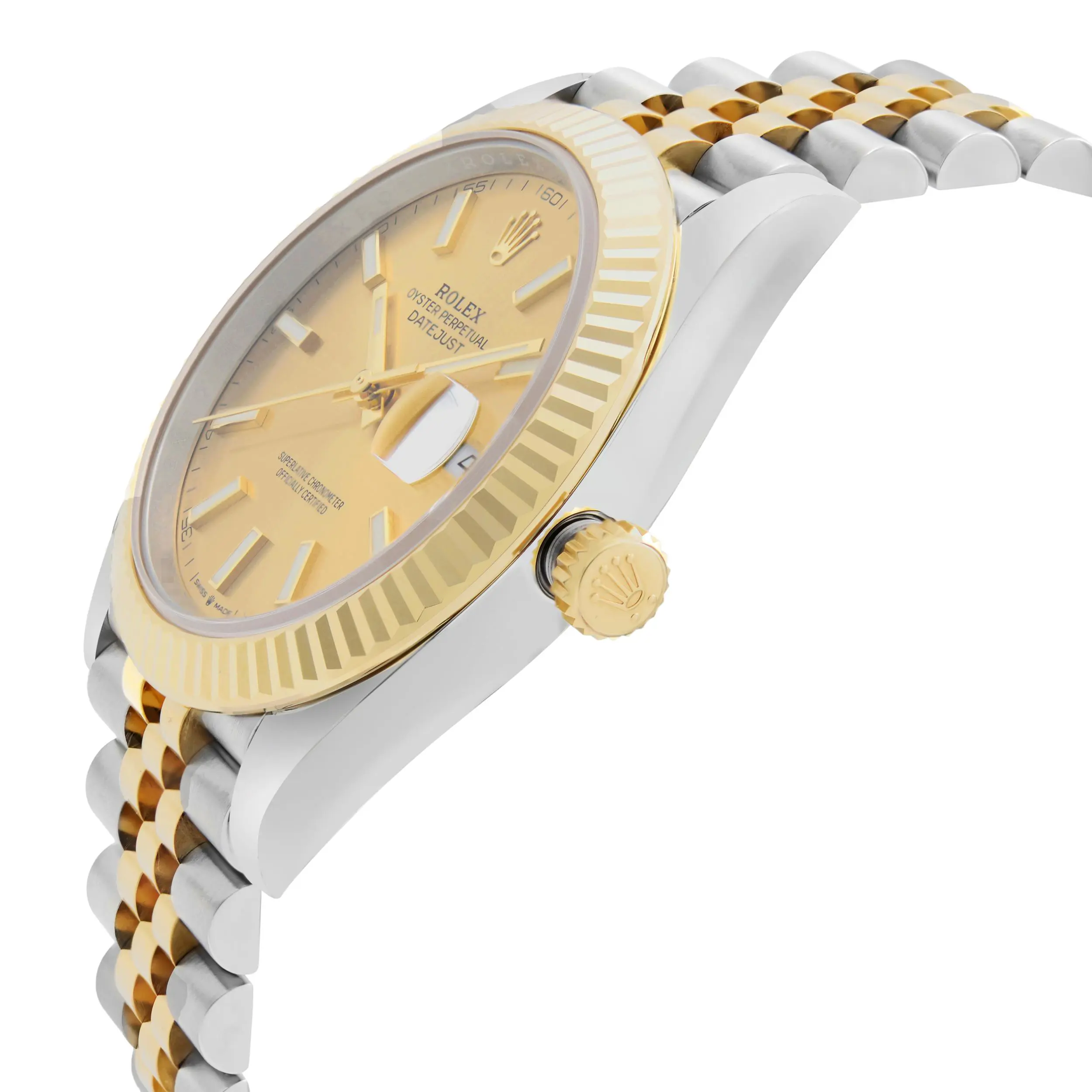 Rolex Datejust 41 18K Yellow Gold Steel Champagne Stick Dial Men Watch 126333