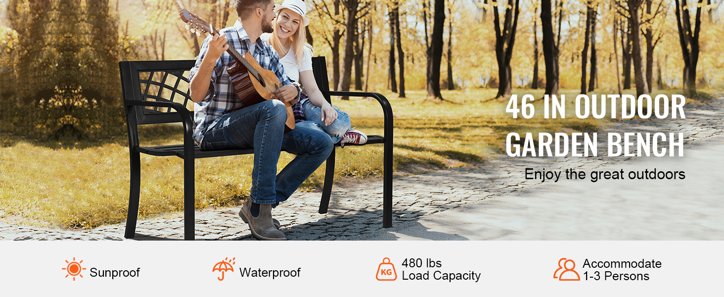 The intricately designed floral pattern on the backrest adds a touch of natural beauty to the outdoor garden bench. Perfect for gardens, parks, patios, or porches, our bench provides a comfortable resting spot for you, your family, and friends to share wonderful moments.