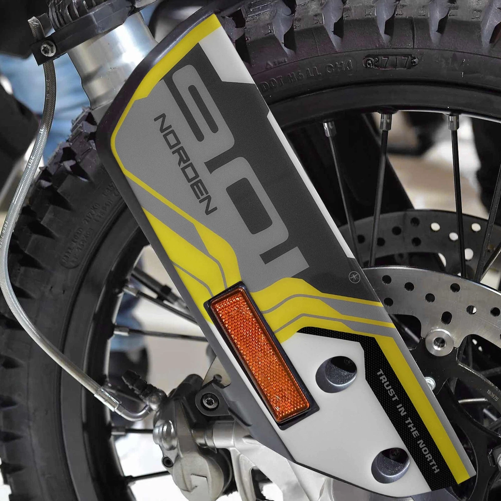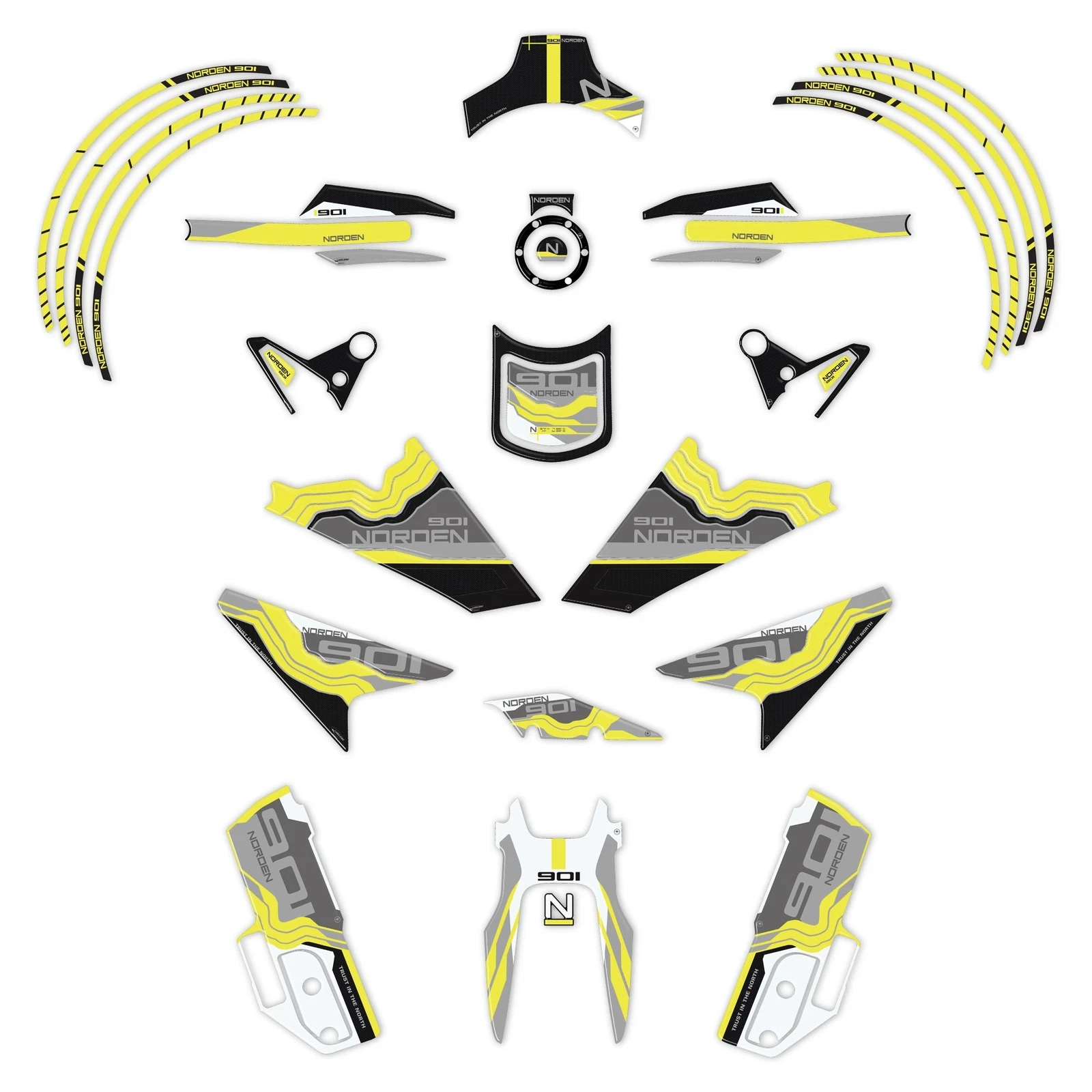 Pegatina con gráficos a juego con el colorear 2024 de la moto. Nuestras pegatinas dProtegen y protegen de golpes y arañazos el carenado tuyo Husqvarna Norden 901 de 2024, resisten los lavados, la intemperie y los rayos UV