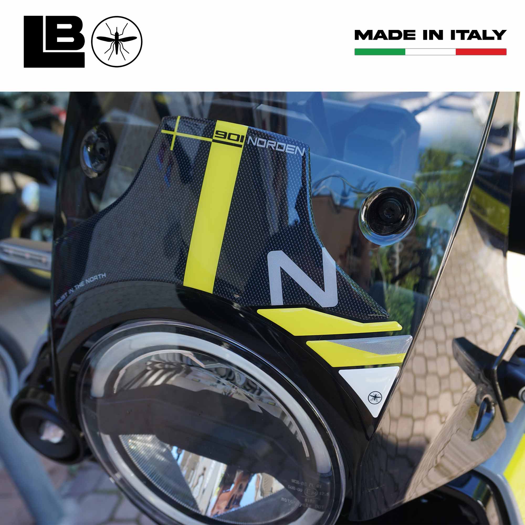 Protección adhesiva de resina para la zona del parabrisas de la moto. Husqvarna Norden 901 2024. Adhesivo para moto fabricado en resina gel 3D Exclusivo - Labelbike®. Adhesivo de matrícula 3D para carenado delantero, HECHO EN ITALIA fabricado en resina con efecto 3D.