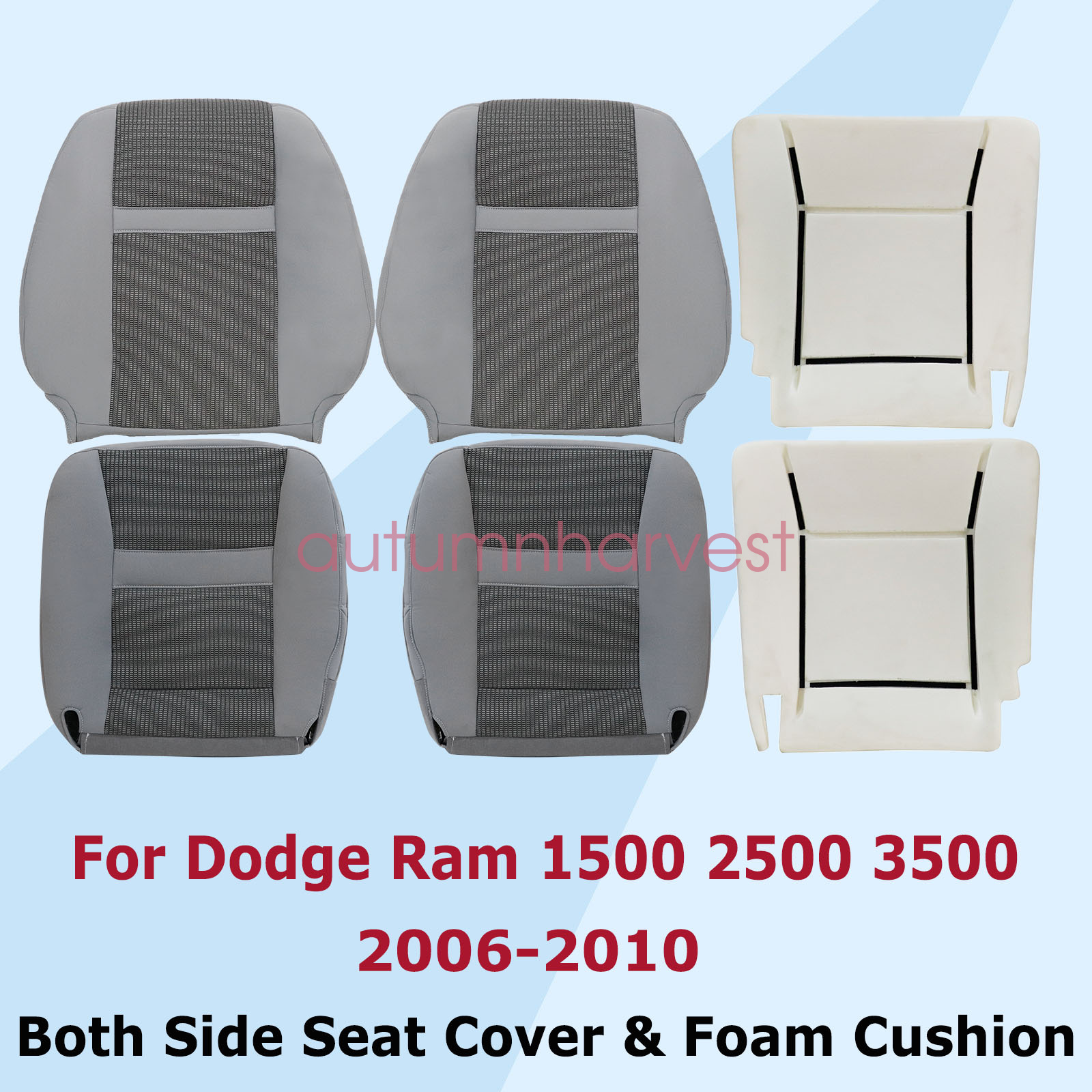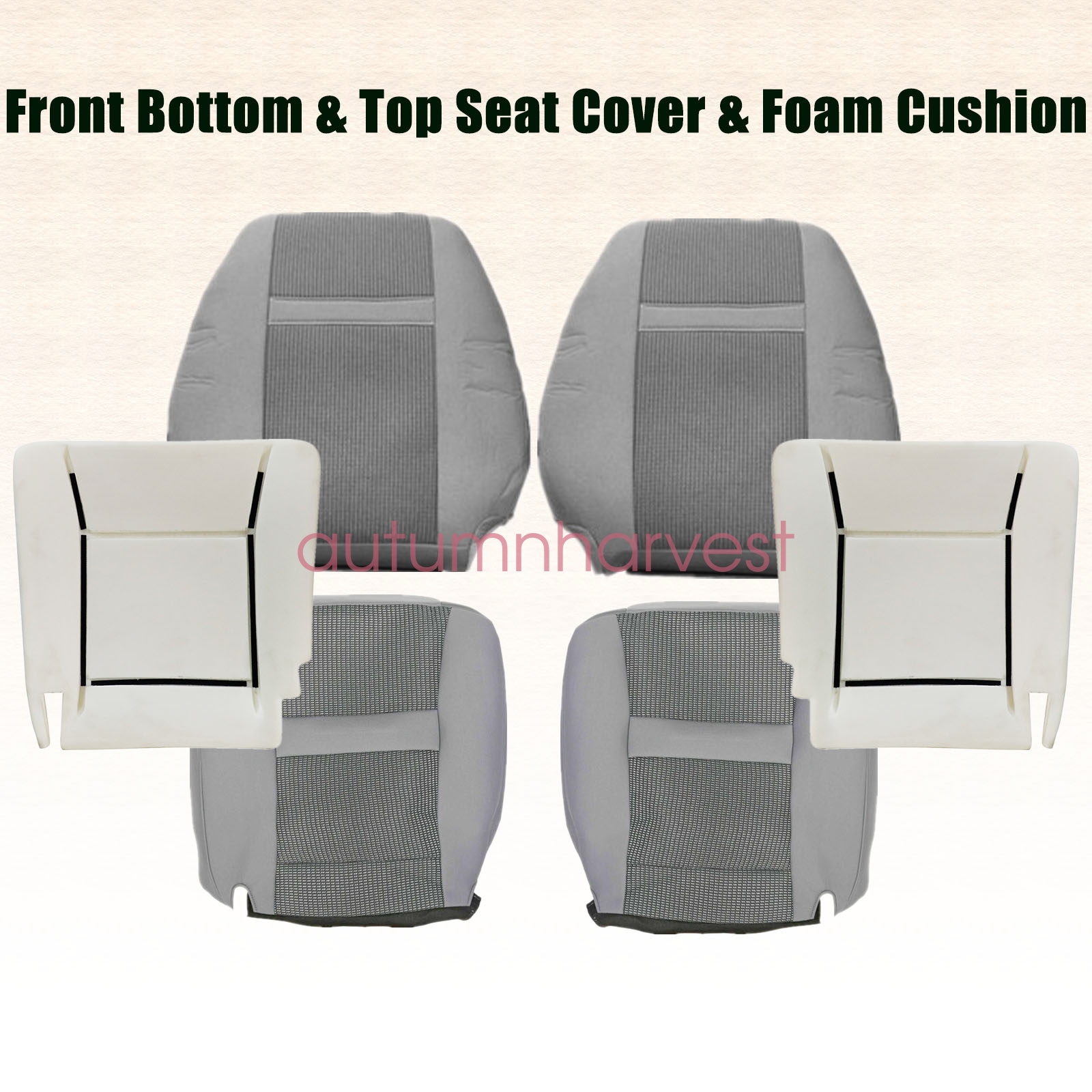 This Driver & Passenger Replacement Bottom & Top seat cover & foam cushion, built to factory specs with Quality Cloth to match the Interior of your vehicle!