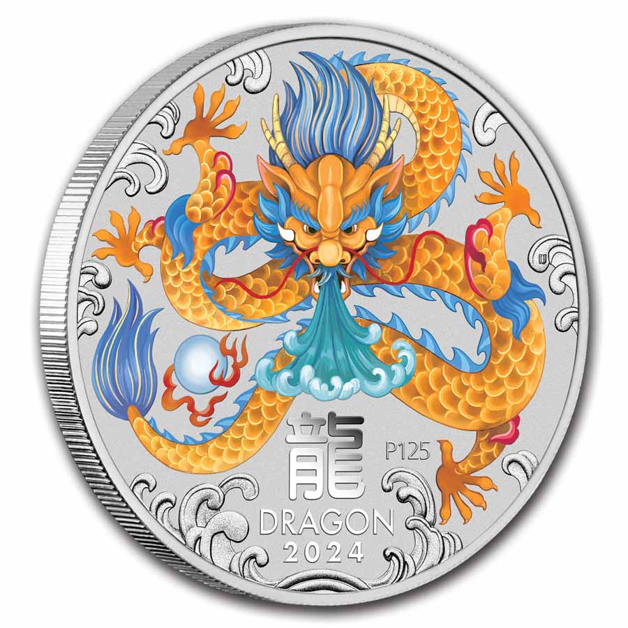 APMEX is an authorized distributor of Perth Mint products, allowing APMEX to get coins directly from The Perth Mint and pass them along to you. This Year of the Dragon coin would make a great addition to any lunar collection. Add this spectacular 2024-P 1 kilo Silver Year of the Dragon colorized coin to your cart today!