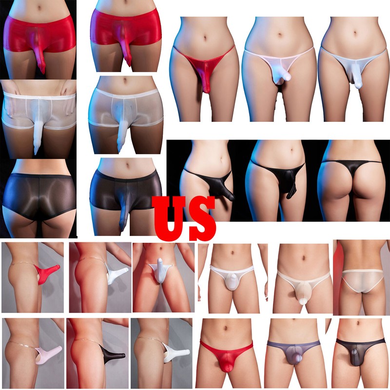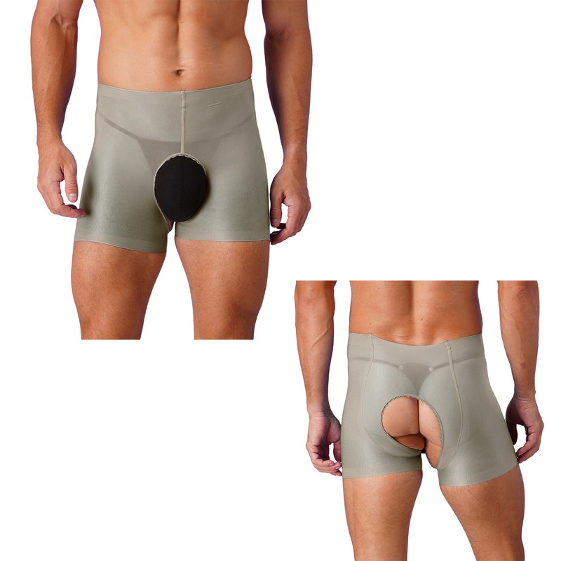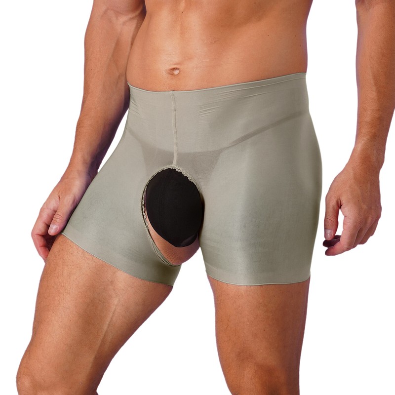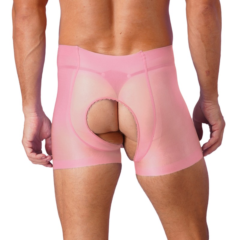 Crotchless see-through boxer brief underpants stretchy shorts underwear for men.