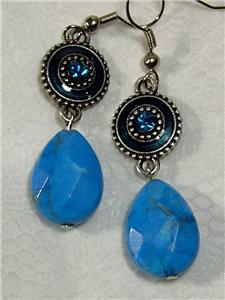 CYNTHIA LYNN "TURQUOISE DREAM" SILVER TEARDROP TURQUOISE CRYSTAL DANGLE EARRINGS 1.75 INCHES