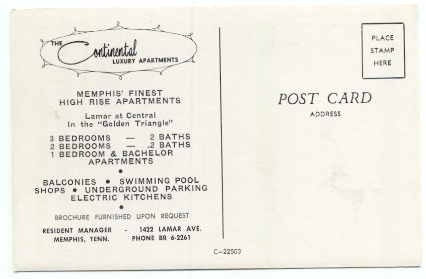 Memphis TN The Continental Luxury Apartments Postcard Tennessee