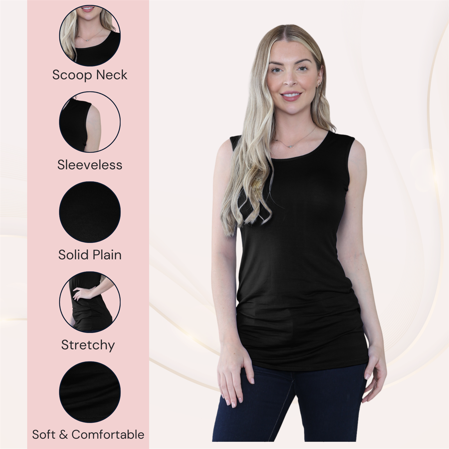 Elevate your summer wardrobe with the Women Scoop Neck Sleeveless Stretch Plain Vest T-Shirt Top. This scoop neck vest top combines style and comfort, making it a versatile piece for various occasions. Crafted from high-quality, stretchy fabric, it ensures all-day comfort and flexibility. Sleeveless Stretch Plain Vest T-Shirt is an essential addition to any summer collection. Whether paired with jeans, shorts, or skirts, this top offers versatility and elegance. Enhance your summer wardrobe with this trendy and comfortable summer top, designed to keep you looking stylish and feeling great throughout the season.
