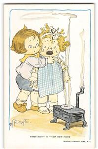 "New Home" GRACE DRAYTON Artist-Signed Campbell Soup Kids Cute Comic 1910s Reinthal & Newman Antique Rare Vintage Postcard.