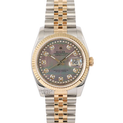 Introducing an authentic Rolex Men's Datejust watch featuring a Rolex 18K yellow gold and stainless steel jubilee bracelet, a custom Champagne Diamond dial, and a custom 18K yellow gold bezel with 1.2CT diamonds. This genuine pre-owned timepiece is impeccably maintained, assuring precise timekeeping, having undergone thorough servicing, polishing, and testing before being offered for sale. With a 36mm case diameter, this Rolex Datejust 36mm is designed for men/unisex and includes a sapphire crystal, Rolex Self-Winding Automatic Quickset 3035 Movement, and a Rolex Two-Tone 18K Yellow Gold and Stainless Steel Jubilee Bracelet with a clasp fitting wrists up to 7.5 inches.