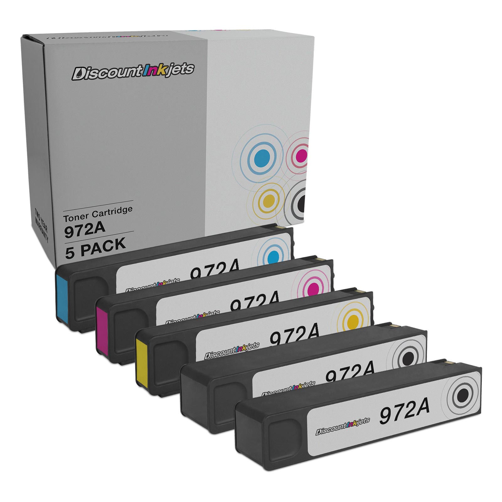Save and print even more when you shop with Discount Inkjets! This offer includes (2) F6T80AN black, (1) L0R86AN cyan, (1) L0R89AN magenta and (1) L0R92AN yellow ink cartridges; they replace the 972A standard yield ink series. Why pay twice as much for brand name Hewlett Packard ink when our compatible printer supplies are guaranteed to meet or exceed the same quality standards as the original brand? This set is compatible with HP PageWide Pro 352dw, 377dw, 452dn, 477dn, 477dw, 552dw and 577z printers. Please note, retail packaging may vary and these ink cartridges will only work with printers purchased within the United States and Canada. The use of compatible printing supplies does not void your printer warranty. HP does not manufacture our compatible ink cartridges. We are proud to offer a 100% satisfaction and Lifetime guarantee on all compatible printing products. We are the exclusive reseller of Discount Inkjets brand of high quality printing supplies.